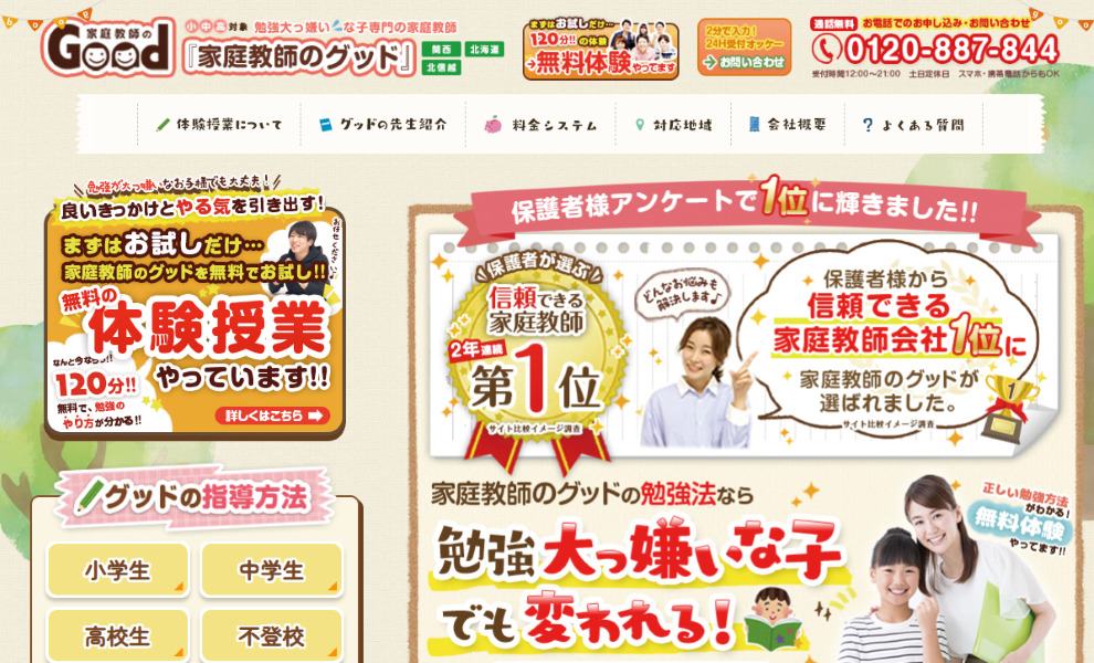 家庭教師のグッドは、「勉強が嫌いな子専門」という明確なコンセプトを持った家庭教師サービスです。